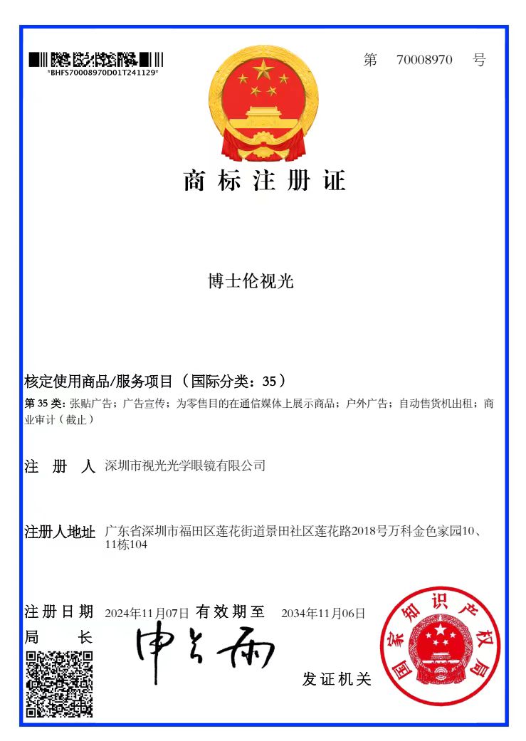 深圳市博士伦视光眼镜有限公司是一家专注于视光服务与眼镜零售的专业企业,法定代表人为郑曼斯。公司深耕深圳本地视光行业,凭借专业的验光技术、优质的产品品质与贴心的服务理念,赢得了广大消费者的认可与信赖,连锁品牌门店覆盖深圳福田、盐田、罗湖、坪山等多个区域,以多品牌、多门店的布局,为市民提供便捷、专业的视光服务。